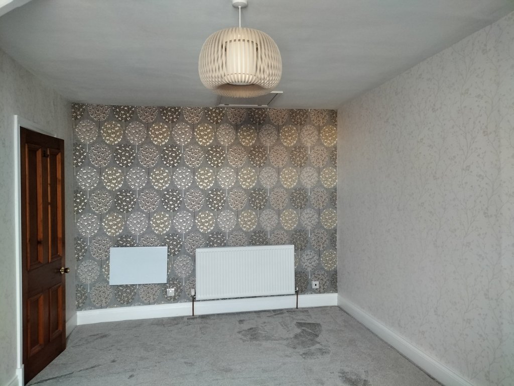 It has been re- papered and even has a feature wall! and painted and a new carpet. It looks great.