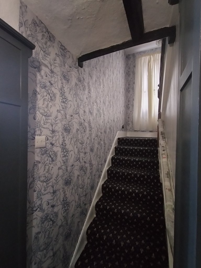 We were not going to decorate the stairs and landing in phase 2 as it is quite a big job, but then decided just to go for it. I had already seen some wallpaper that I liked so it was a quick decision.